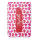 Modern Red and Pink Doodled Hearts Valentine Name Bath Mat