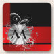 Easily personalise this chic elegant plain bright red modern pattern and black background and silver grey metal look ornate baroque monogrammed swirl circle design by adding your monogram initials to the template to make a unique modern custom personalised gift. PLEASE NOTE the silver grey is not metallic.