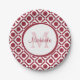 Modern Red and White Geometric Monogram and Name Paper Plate
