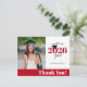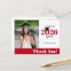 This photo graduation thank you postcard offers a custom photo frame and accented with a color block style of red and white. Class of 2026 appears with graduation cap sitting on top of the "0".