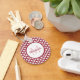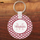Modern Red and White Scallops Monogram and Name Key Ring
