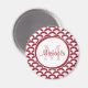 Give your style a modern edge with this graphic red and white fish scale scallop pattern round magnet that you can personalise by adding your name and monogram initial to. This trendy geometric shell pattern design is bold, yet stylish.