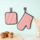 Modern Red and White Striped Oven Mitt & Pot Holder Set