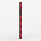 Bold red and black buffalo check pattern is made of black, red, and dark red squares in a bold checked plaid with a black triangle in the lower right corner with a red custom monogram. Personalise it with your initial in the sidebar. Available for other models in the sidebar.