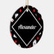 Modern Red & Black Poker Theme Pattern Custom Name Ceramic Ornament