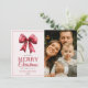 Modern Red Bow Merry Christmas Photo Holiday Card