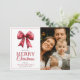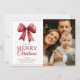 Modern Red Bow Merry Christmas Photo Holiday Card
