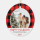 Modern Red Buffalo Plaid Christmas Family Photo Ceramic Ornament