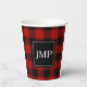 Modern Red Buffalo Plaid Personal Initial Paper Cups