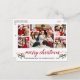 Modern Calligraphy Script 5 Photo Family Photo Collage Merry Christmas Postcard includes Watercolor Christmas Holly Berries - Red Script
