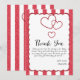 Modern Red Chalk Stripes Triple Hearts Baby Shower Thank You Card