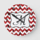 Modern Red Glitter Chevron Zig Zag Stripe Fabric Print Pattern Monogram Initial Wall Clock Personalised