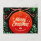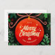 Modern Red Christmas Ball Ornament Botanical Holiday Postcard