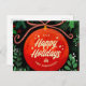 Modern Red Christmas Ball Ornament Botanical Holiday Postcard