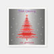 Modern Red Christmas Tree Snowflakes Name Silver Napkin