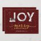 Modern Red Elegant Gold Script JOY Snow Overlay Holiday Card