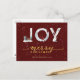 Modern Red Elegant Gold Script JOY Snow Overlay Holiday Postcard