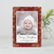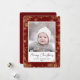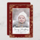 Send customisable and personalised holiday greetings to friends, colleagues and family in simple, minimalist, elegant, fun, festive and modern photo cards! A beautiful frame of variety of gold winter snowflakes on maroon red background surrounds your photo on round edge paper. The greeting " Merry Christmas " is written in elegant calligraphy, and below features your custom greeting message from your family name in modern typography. Reverse to reveal a beautiful the full gold winter snowflakes on maroon red pattern background.