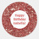 Modern Red Faux Glitter Look Custom Happy Birthday Classic Round Sticker