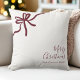 Modern Red Festive Bow Script Merry Christmas Cushion