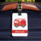 Modern Red Fire Truck Personalised Name Luggage Tag