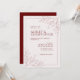 Classically elegant minimal all-in-one wedding invitation featuring foliage outline frame corners and minimalist text details in crimson red. Modern minimal design prioritising functionality, balance and harmony aimed at setting an elegantly refined tone. Perfect for couples that embrace minimalist characteristics, straightforward simplicity and understated beauty. Back of card includes RSVP, wedding details and QR code to link to wedding website. ❀❀❀ Available in a curated selection of modern background colours. ❀❀❀ Fully personalizable and easily customisable. However, please reach out for assistance in personalising or customising to fit your wishes. Or, for assistance in creating related products to create your perfect wedding stationery suite. We're here to help and want to create your perfect wedding stationery.