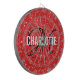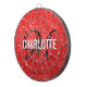 Modern red glitter dart board with a white typography name and black monogram. Personalise with name and initial.