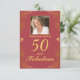 Modern Red Gold 50 Fabulous Birthday QR Code RSVP Card