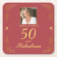 Modern Red Gold 50 Fabulous Photo Birthday Square Paper Coaster