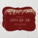 Elegant red and gold Happy New Year card showcasing glowing lights, glitter and a modern font type.