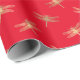 Modern Red Gold Dragonfly Pattern Wrapping Paper