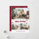 Modern red and gold photo Happy Pawlidays card featuring three photos and paw prints on the front and a red background with gold stars at the back. Easily personalise this elegant photo holiday card with your photos, family name and the year.