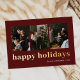 Modern Red Gold Typography Happy Holidays Photo Foil Holiday Card