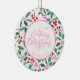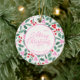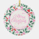Modern Red & Green Christmas Floral Pattern Ceramic Ornament