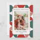 Modern Red & Green Geometric Floral Pattern Photo Holiday Card