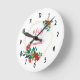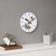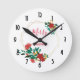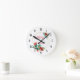 A clock with a pretty floral bouquet in red, gold and green colours.