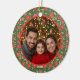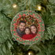 Celebrate the magic of the season with this custom photo ornament featuring a joyful family portrait or even your favourite pet photo framed by a whimsical holiday design. Set against a rich green background adorned with cheerful red blooms and snowy white dots, this keepsake captures the warmth and wonder of the Christmas season in a beautifully timeless way.