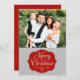 Modern Red Grey Chevron Christmas Photo Card