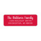 Holiday return address labels feature white custom text that can be personalised with a festive red background colour - can be modified.