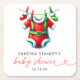 Modern Red Holly Christmas Santa Baby Shower Square Paper Coaster