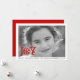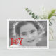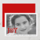 Modern red joy minimal Christmas holiday flat photo card featuring a baby photo and the word “JOY” in rred with a snowflake instead of the letter O and a white border around it. This elegant and contemporary holiday design is a completely customisable template.