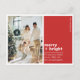 Featuring a timeless red background with a subtle linen texture overlay, crisp white typography, and space for your favourite family photo — this design combines modern minimalism with cosy holiday charm.
