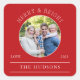 Modern Red Merry & Bright Round Photo Square Sticker