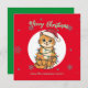 Modern red merry cat snowflake Christmas kitten Holiday Card