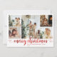 Modern Red Merry Christmas Heart Script 5 Photo Holiday Card
