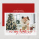 Modern Red Merry Christmas Heart Script Photo Holiday Card