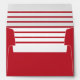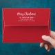 Rich cardinal red holiday envelopes feature Merry Christmas in modern white script writing with custom return address on the back flap in white. Includes a coordinating white and red horizontal stripes pattern printed on the inside of the envelope.