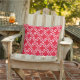 Stylish pillow features a modern decorative Moroccan quatrefoil pattern in white. Customise the red background to coordinate with your outdoor decor.