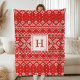 Modern Red Nordic Sweater Knit Monogram Holiday Fleece Blanket