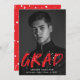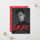 Announce your graduation with our Modern Paint Splatter photo graduation announcements. The design features the graduate's vertical photo with "Grad" in red lettering with white paint splatters. Personalise the front of the creative graduation announcements by adding the graduate's name, school name, and graduation year. The back of the announcement features a red background with white paint splatters. The design is perfect to use for both high school and college graduates.